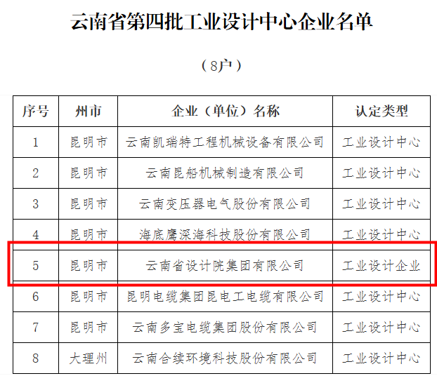 集團獲評云南省“工業(yè)設(shè)計企業(yè)”
